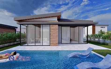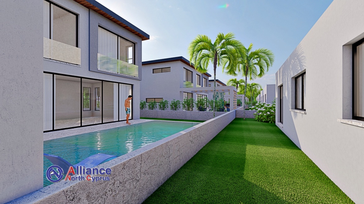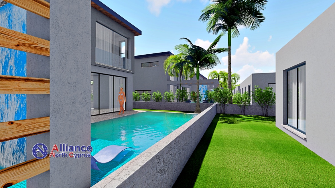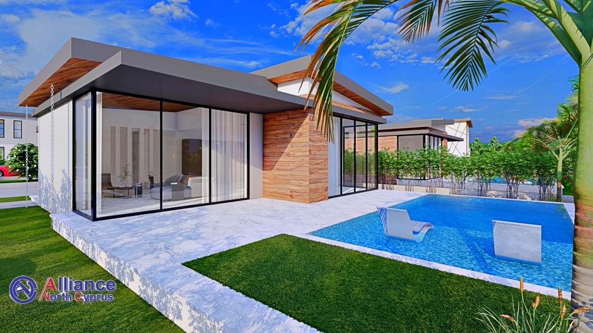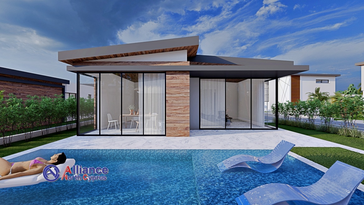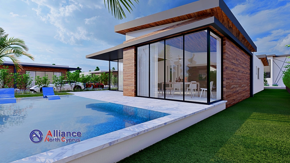 A detached one-storey bungalow, a popular type of property in Northern Cyprus, located in a gated complex with infrastructure and a swimming pool, is offered for sale at a competitive price.