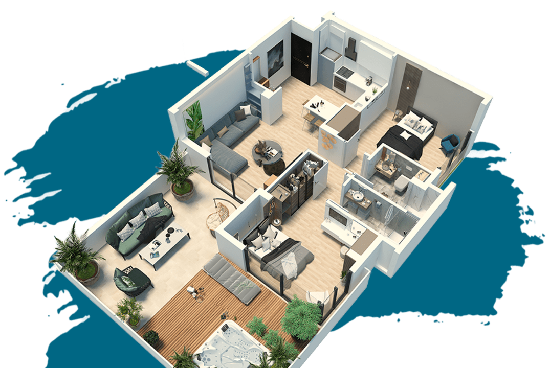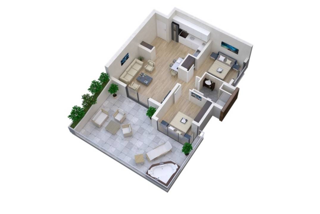 Two bedroom apartments are offered on different floors and with various architectural layout.