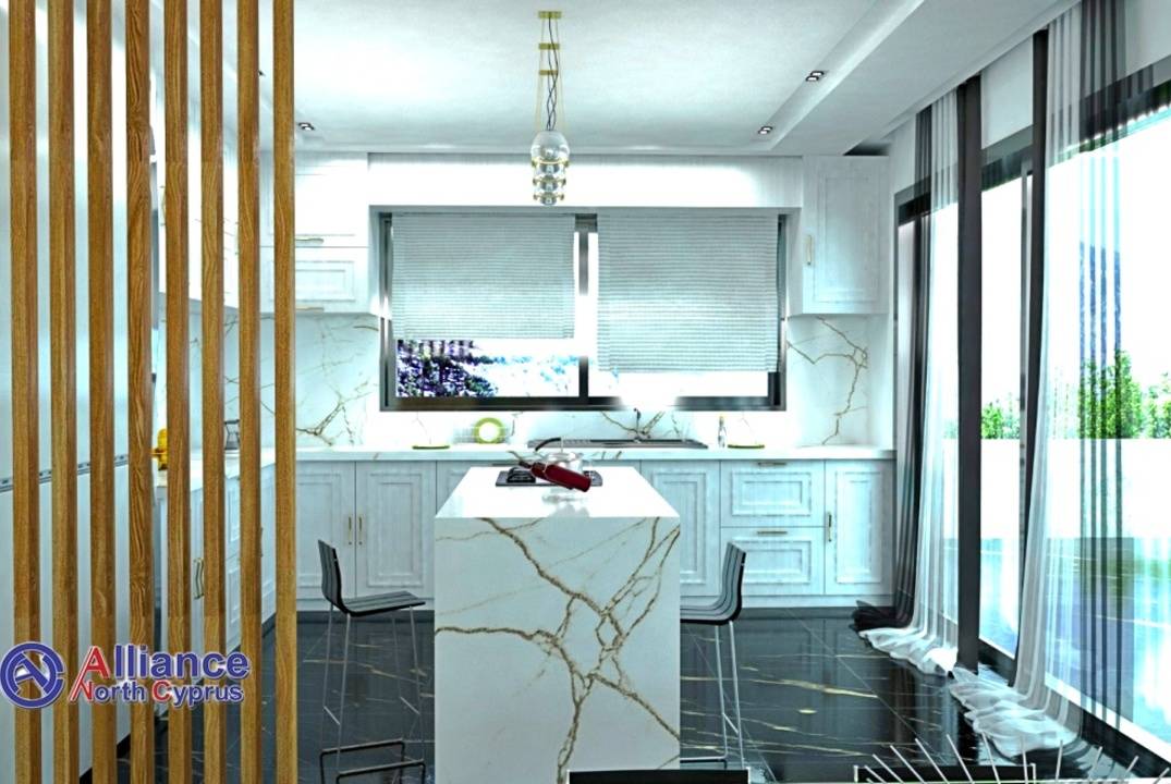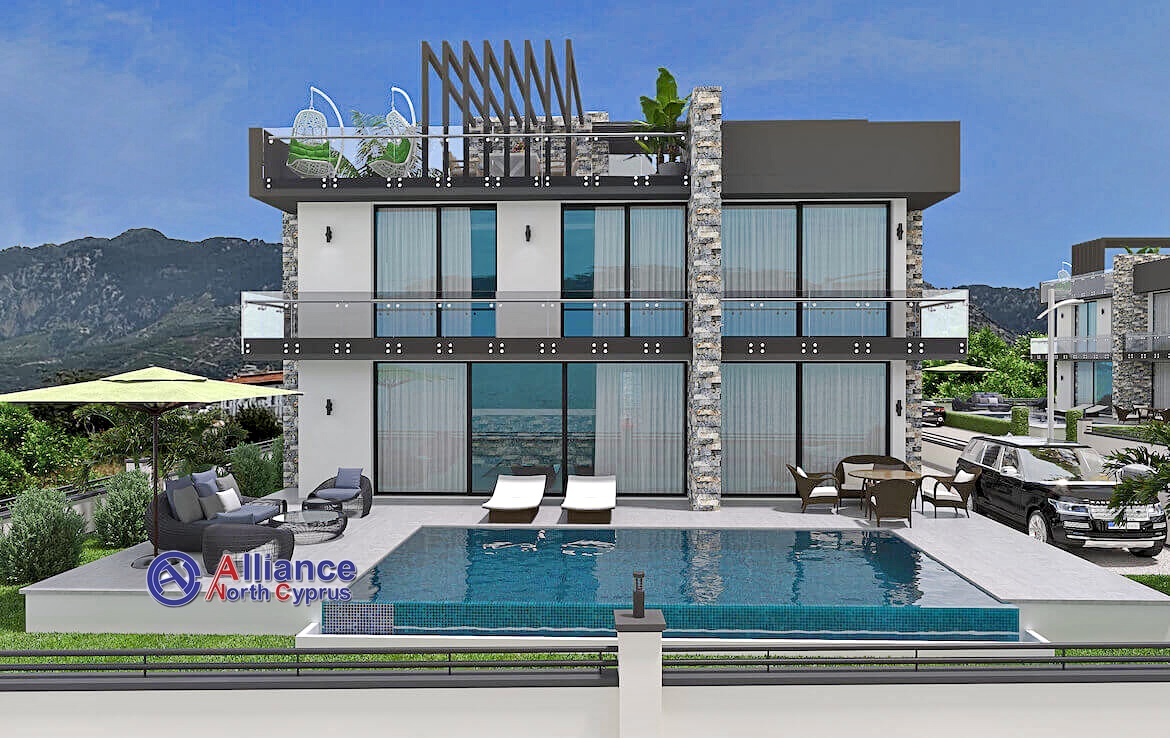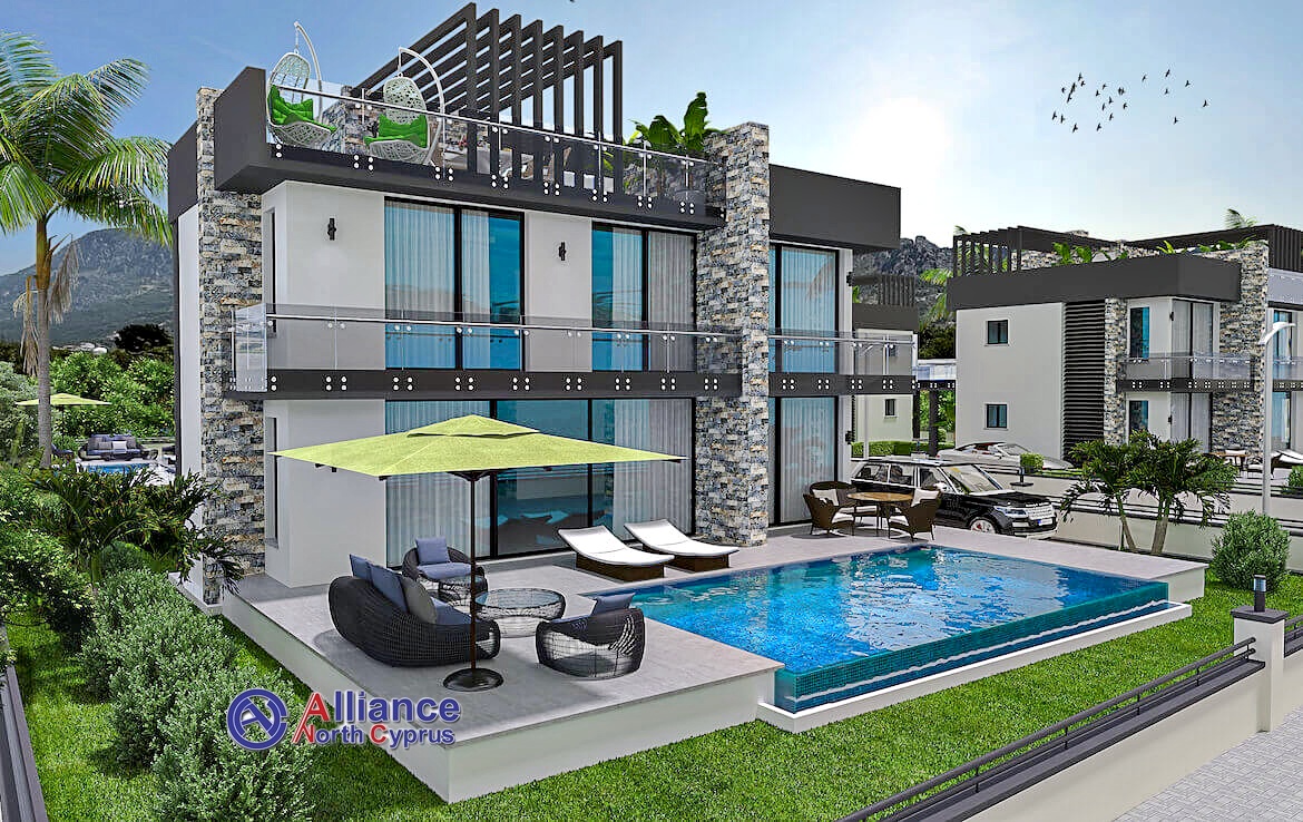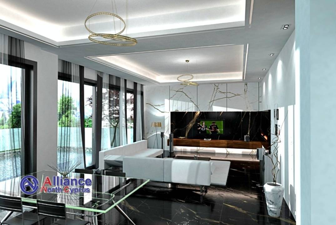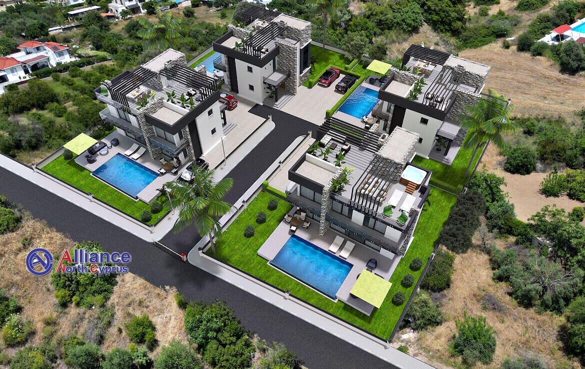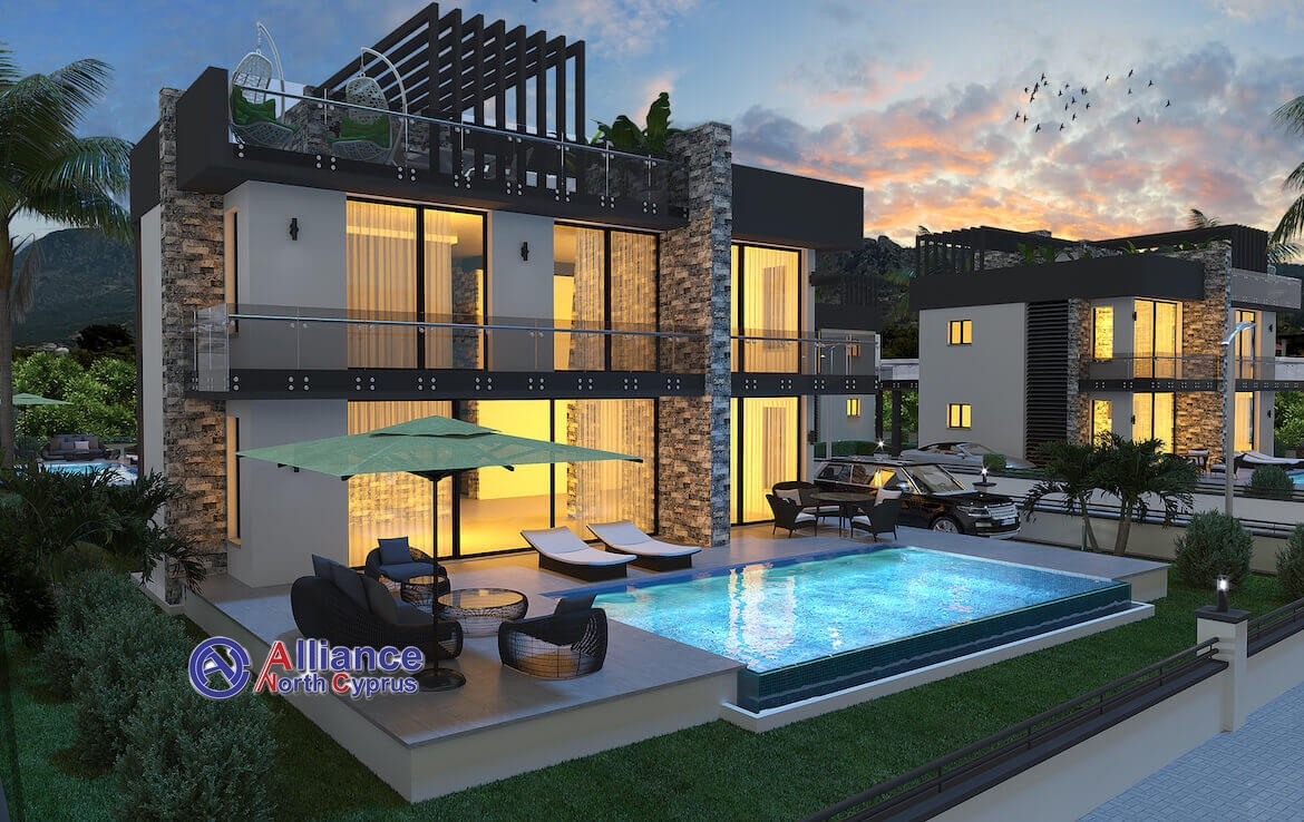 We are pleased to provide you with another luxurious villa complex on the picturesque coast of Northern Cyprus! So, our complex is located in a quiet place in the Karsiyaka area. Here, in the favorite residence of foreigners, you will be able to see four exclusive villas with an unsurpassed level of comfort, quality and aesthetics. The villa boasts every detail in a contemporary style. In addition, only the highest quality materials were used in their construction. Spacious and refined interiors are waiting for you, created with love and craftsmanship. One of the advantages of these villas is their unique location. They are only 500 meters from the coastline, allowing you to enjoy endless walks along the beach and stunning panoramas. Foreign migrants living here make up a large family of different nationalities from many countries of our planet.