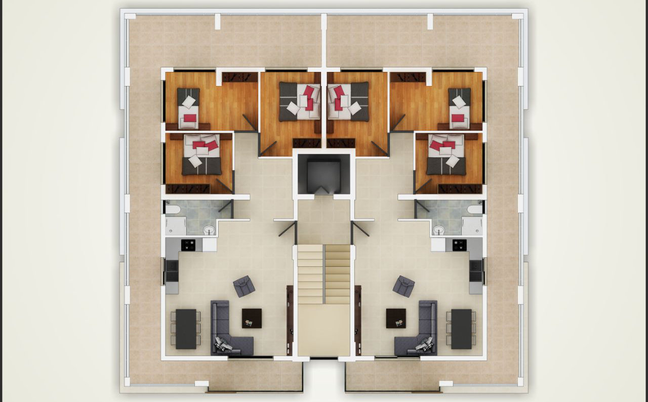The new apartment complex is located in the center of the city of Famagusta, in the Karakol district, near the international university, shops and offices of companies. The building has 17 apartments: 15 apartments with two bedrooms and two penthouses 1 + 1. Apartments with two bedrooms are offered the buyers' choice on different floors at the price of 56 000 - 60 000 British pounds sterling.