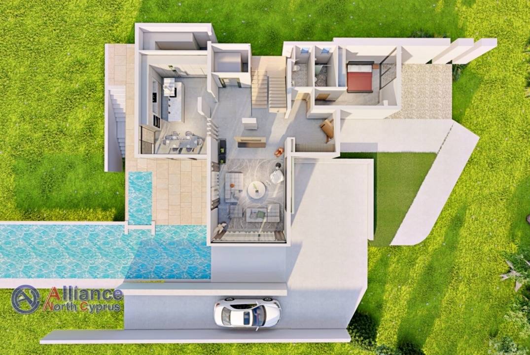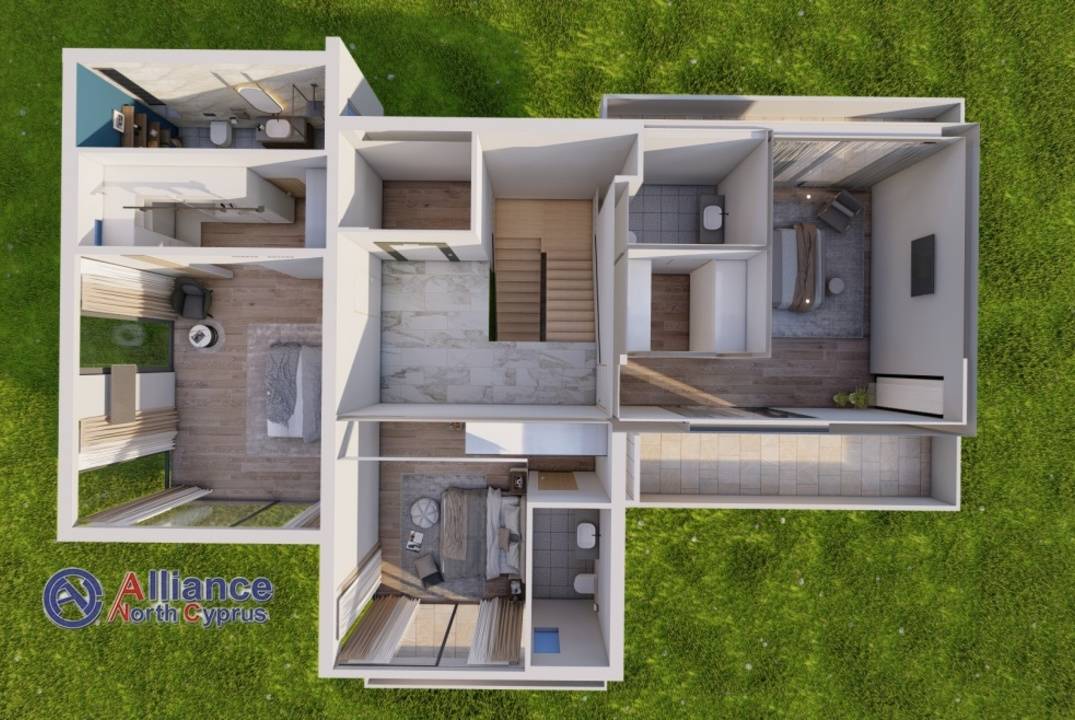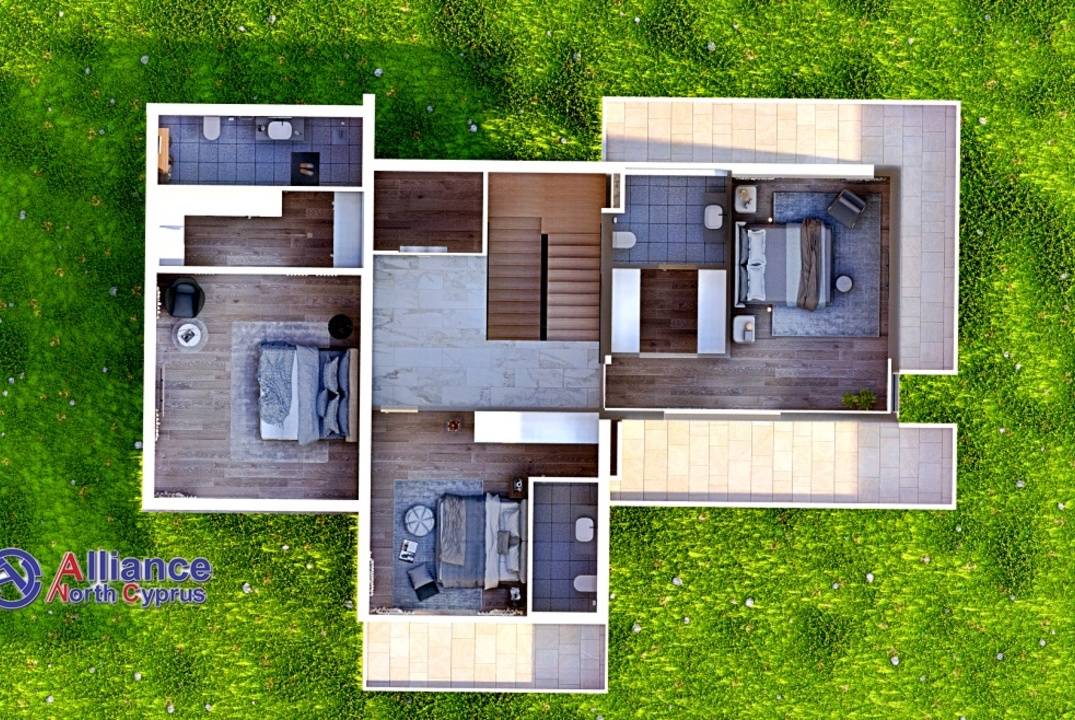 Exclusive construction of luxury villas on the first coastline in the Esentepe area! These luxury 4 bedroom villas will be completed to the highest building standards. Centralized air conditioning, central heating (underfloor), marble flooring, granite counter top, kitchen appliances, automatic shutters are just some of the features of this luxury villa right on the Mediterranean coast. Villas for sale on various plots of land, the choice of land for building a villa on the first and second coastline.