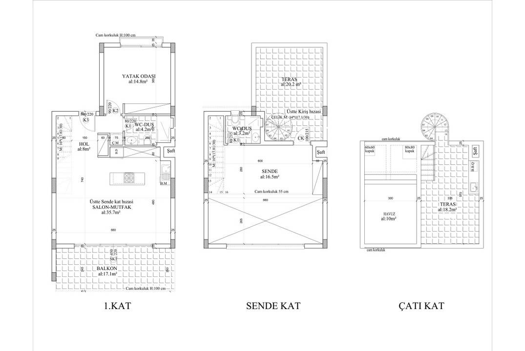 Open terraces - 80 sq.m. roof terrace - 60 sq.m.