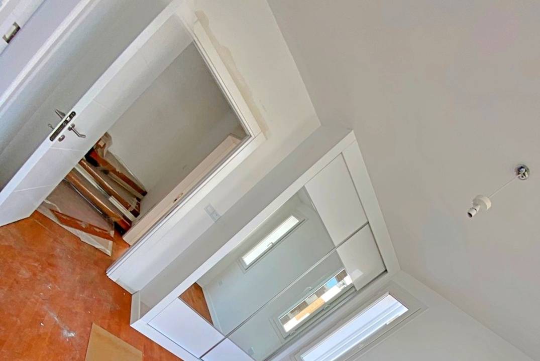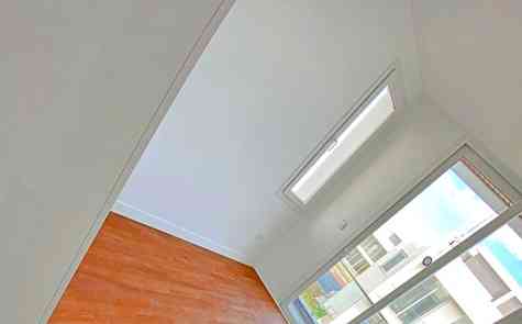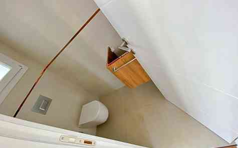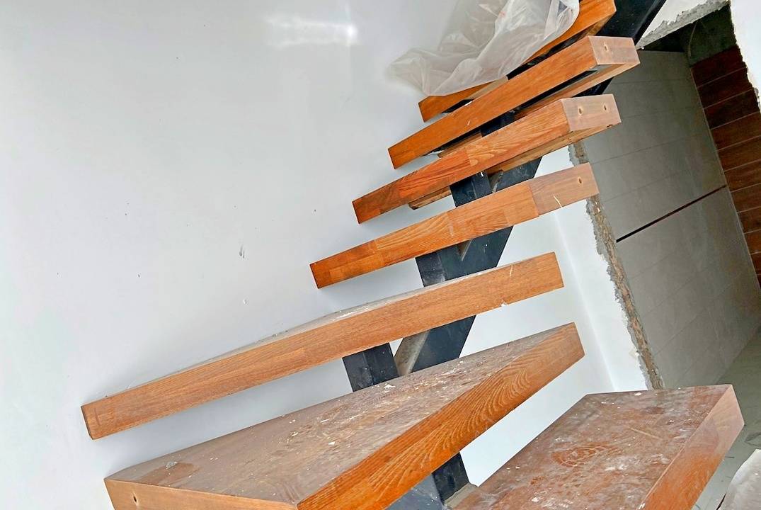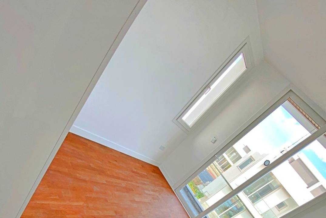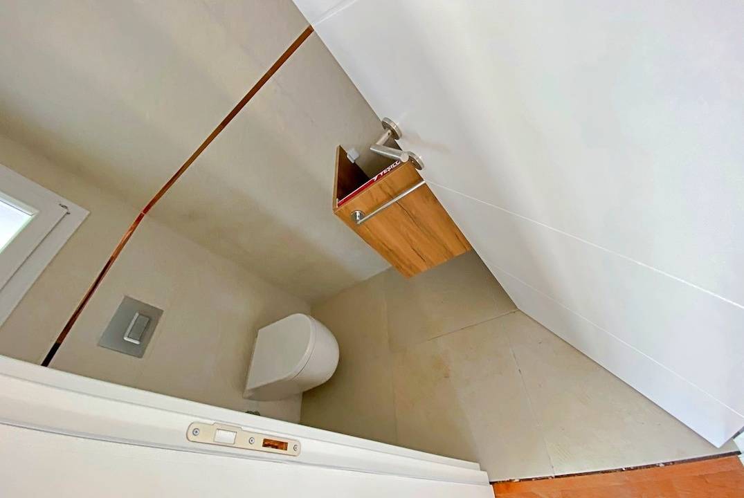 The townhouse for two families offers a comfortable life on three levels - a living room and kitchen area on the first floor, two bedrooms on the second and a spacious terrace - on the third.