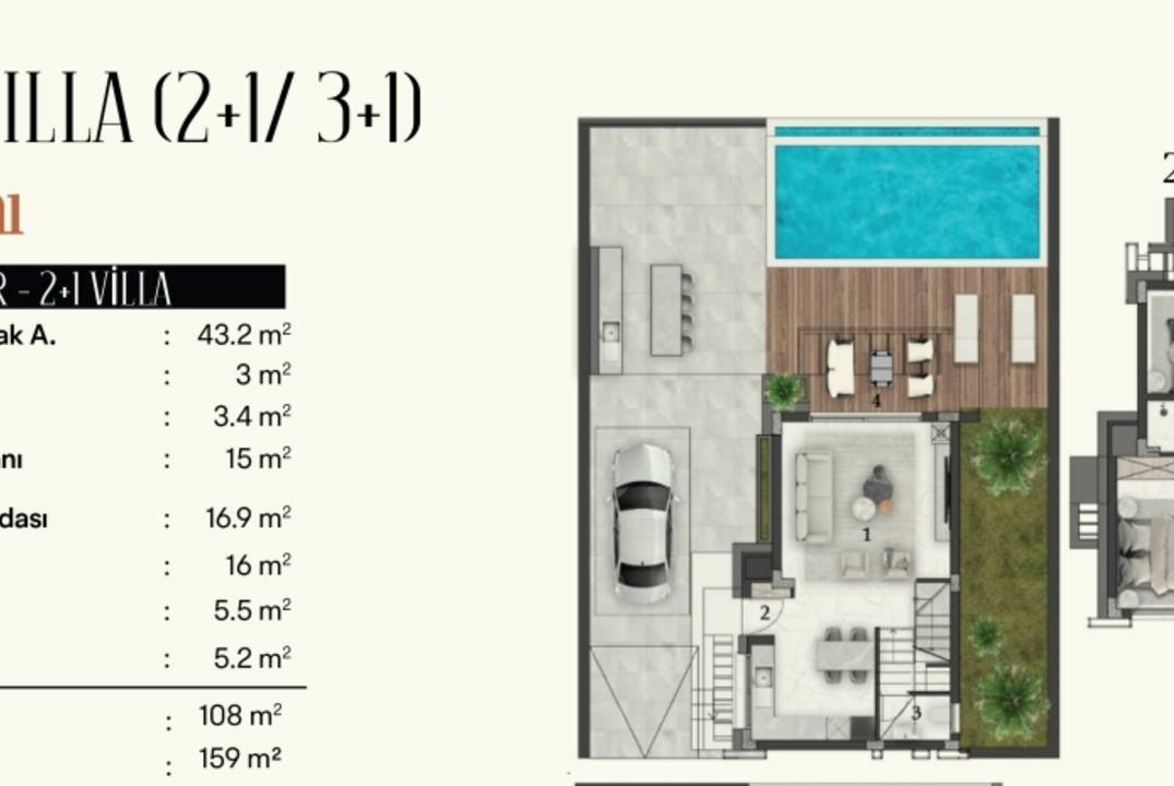 The gated complex is located in the tourist place Bogaz, which has already conquered the hearts of tourists with its pristine beauty. Despite some seclusion, the city of Famagusta is only 15-20 minutes drive, and Iskele is very close, in 5 minutes drive. A beautiful small settlement Bogaz offers the necessary infrastructure, magnificent traditional restaurants, shops, a supermarket.