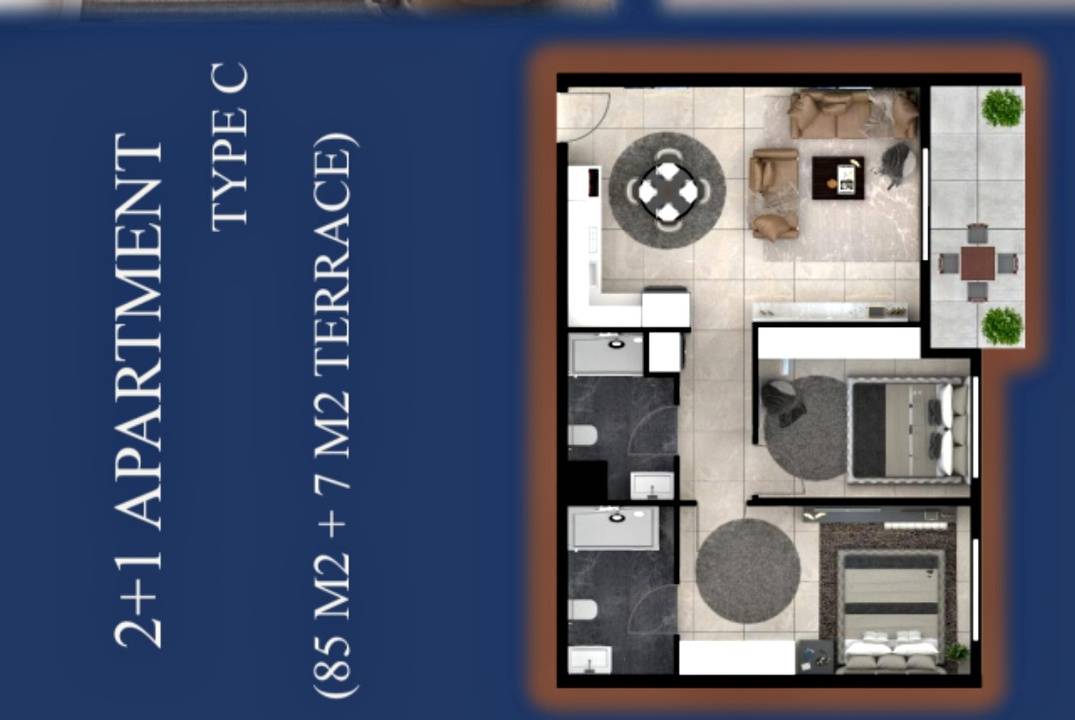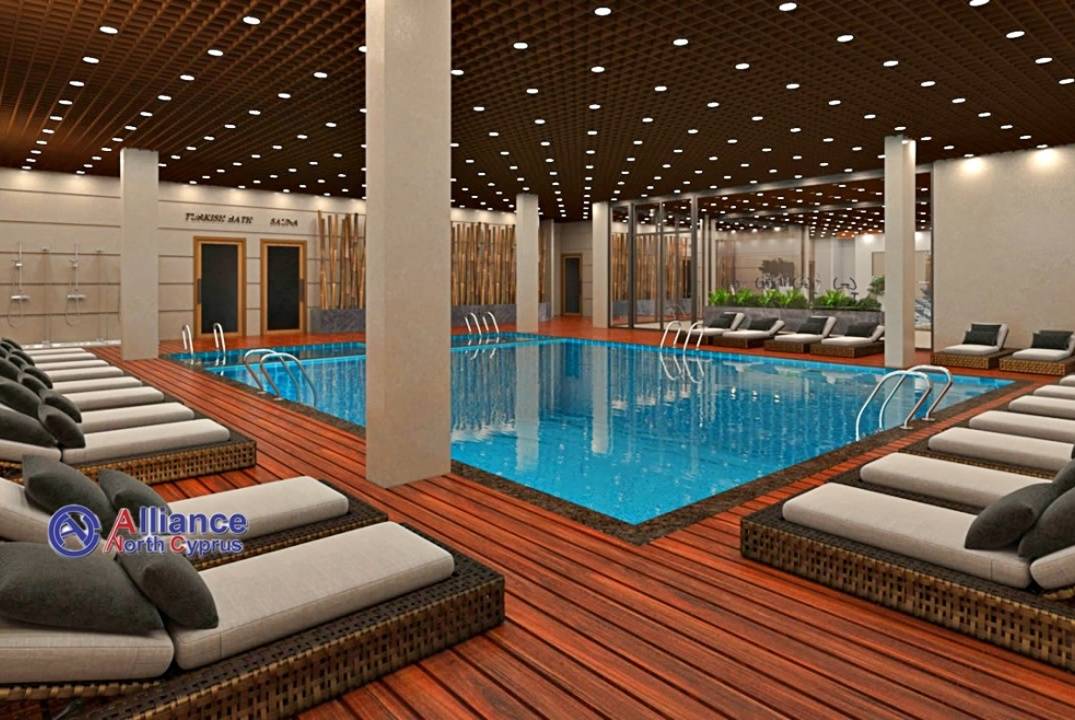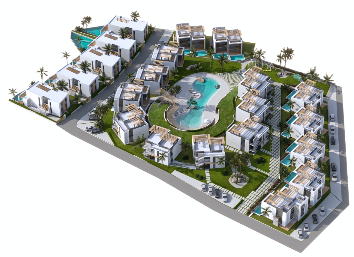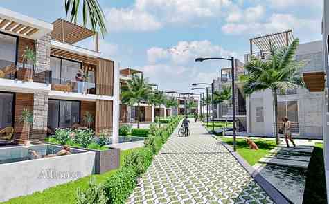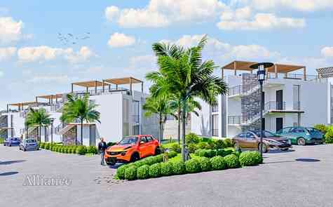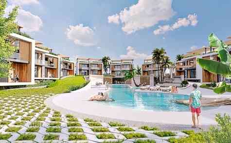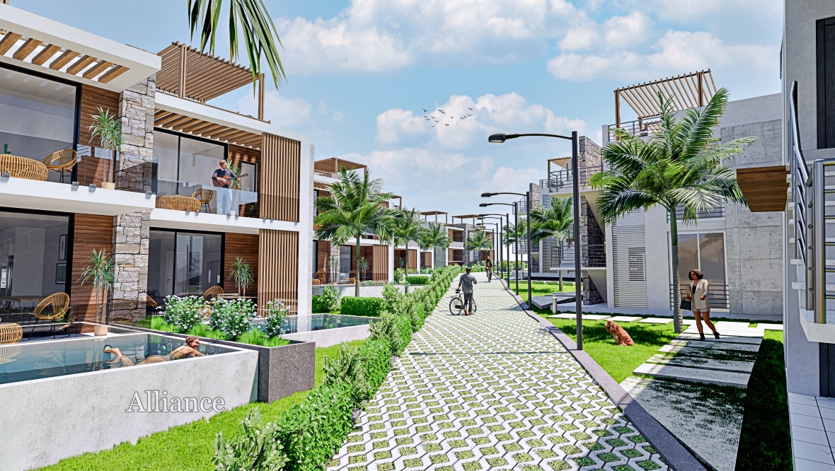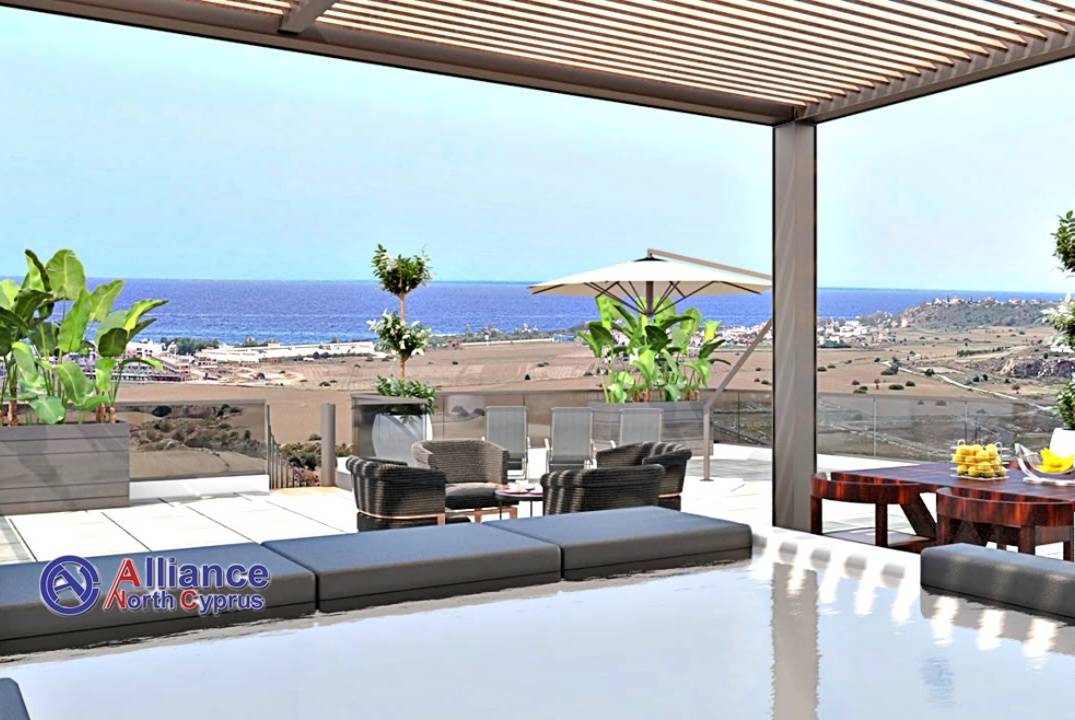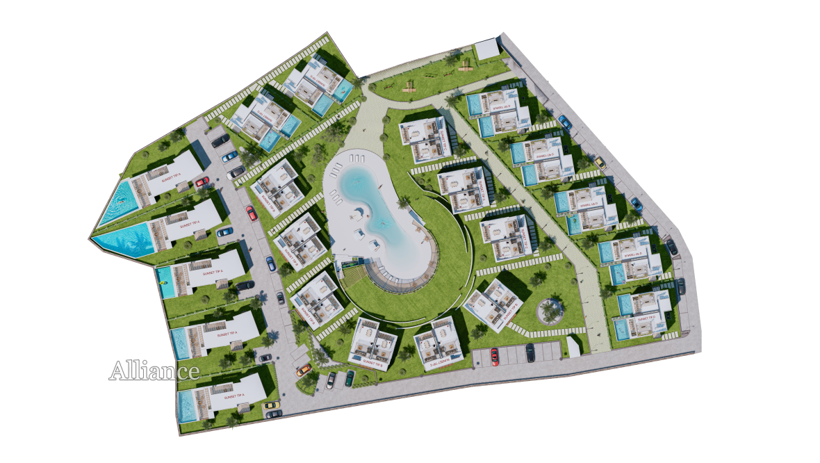In a new residential complex, which is located in a beautiful place in Bahceli, there are options for everyone - individual villas with a pool, villas for two owners, and apartments with a shared pool. Surrounding the large communal pool are modern one and two bedroom apartments with a choice of floors, while the two-family villas have the option of a private pool. There are also individual villas with private pools. The seashore is located within walking distance, and there are cafes, restaurants, a shop nearby.