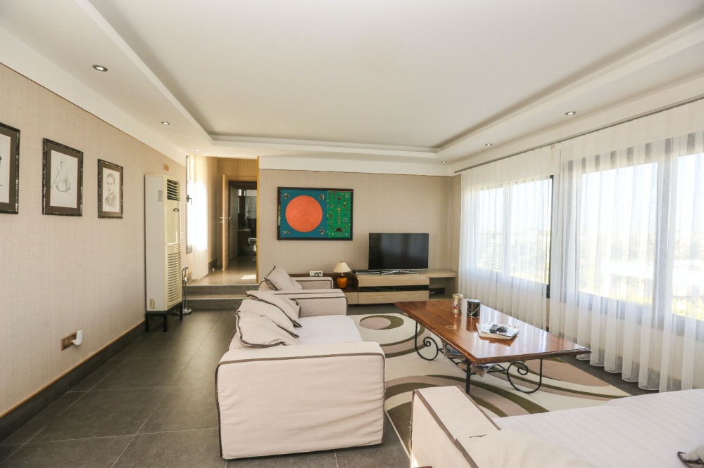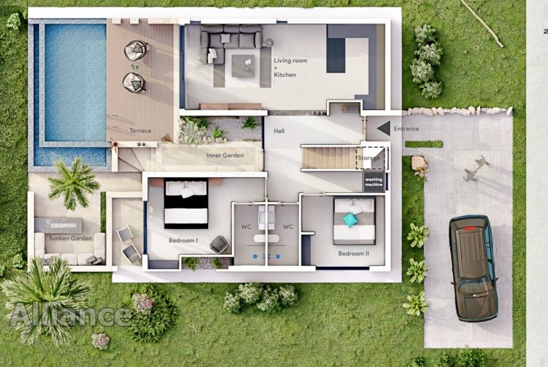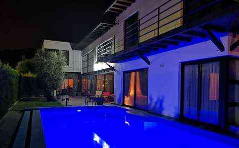 One of the features of the villa is two separate living areas - both with living rooms, bathrooms and bedrooms, located on different sides of the house. Thus, if two families live in the house or have guests, they can comfortably live in their “wing” of the house.