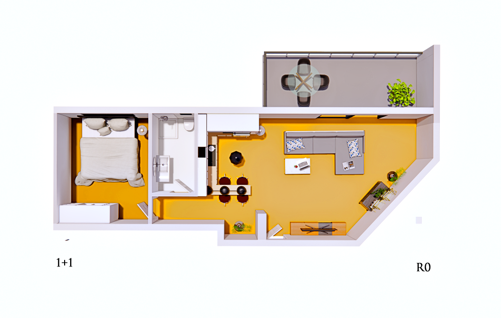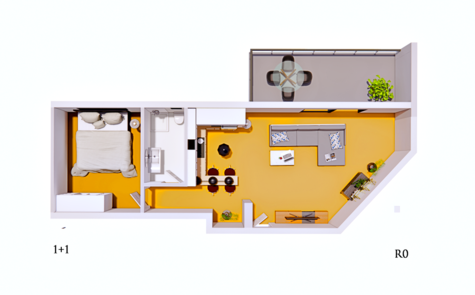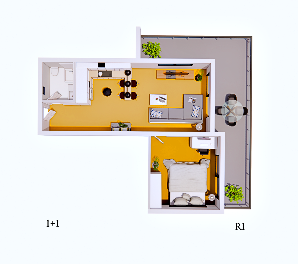 Townhouses for four families offer modern design and finishes. On the first floor there is an open plan kitchen and living room, as well as a toilet and a bedroom, on the second there are two bedrooms, each with a separate shower room and balcony.