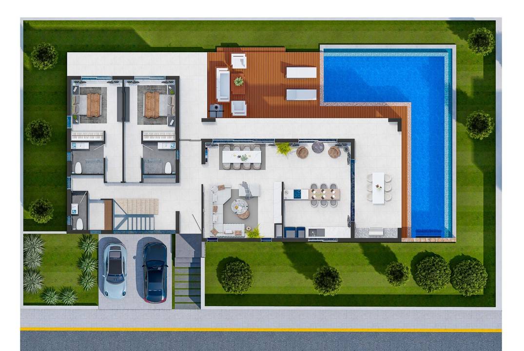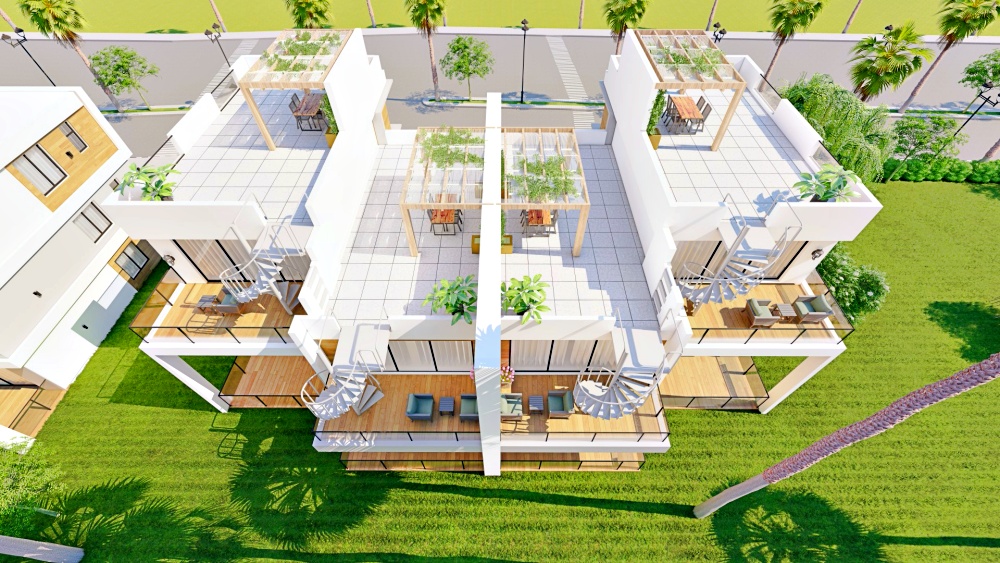 The project of villas is located on the coast in the Bogaz area, having chosen a unique location - near sandy beaches: mountain views, next to the infrastructure of the popular Iskele, but in a quiet and peaceful place. The new highway, located nearby, guarantees fast and comfortable car delivery to the airport, Famagusta city or Karpaz. There is a popular water park next to the complex, which residents of the complex can use at any time, and the state sandy beach is literally 10-15 minutes of a pleasant walk.
