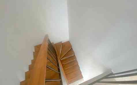 The duplex apartment offers two bedrooms, two bathrooms, an open plan living room and kitchen with access to a balcony. Bedrooms are located on the first and second levels.