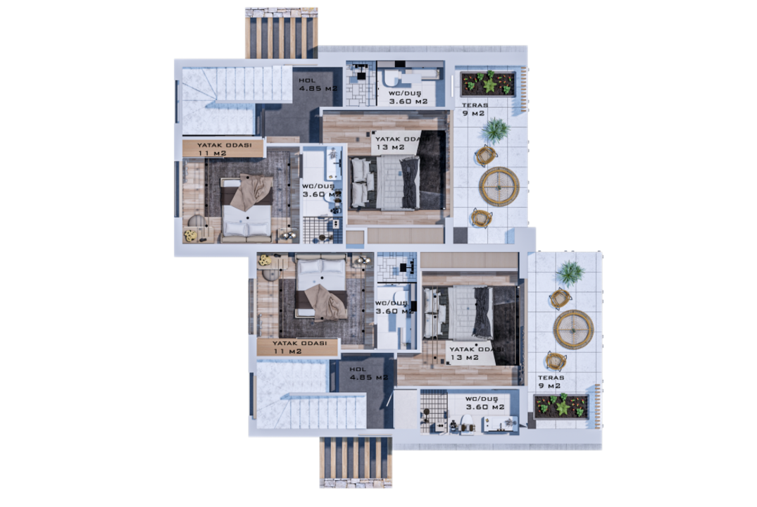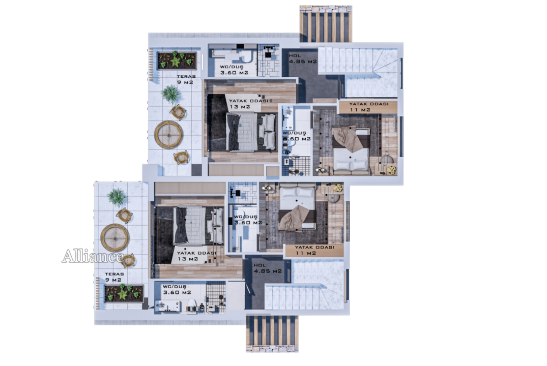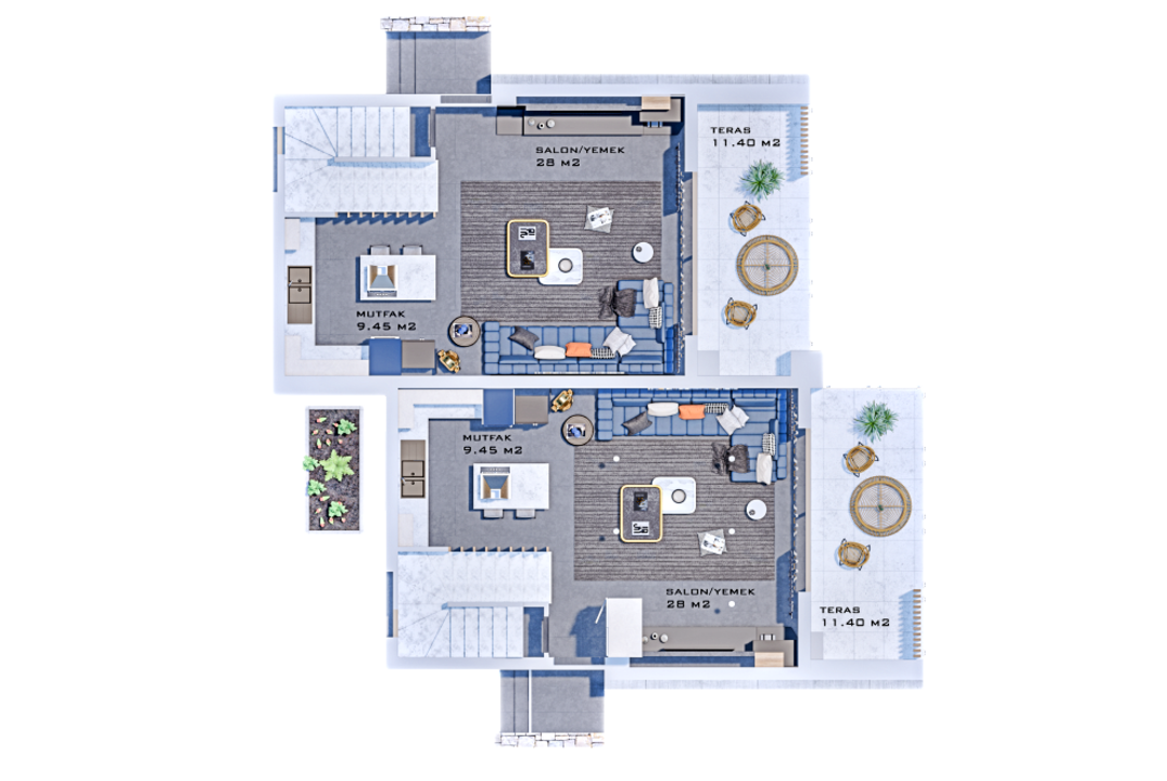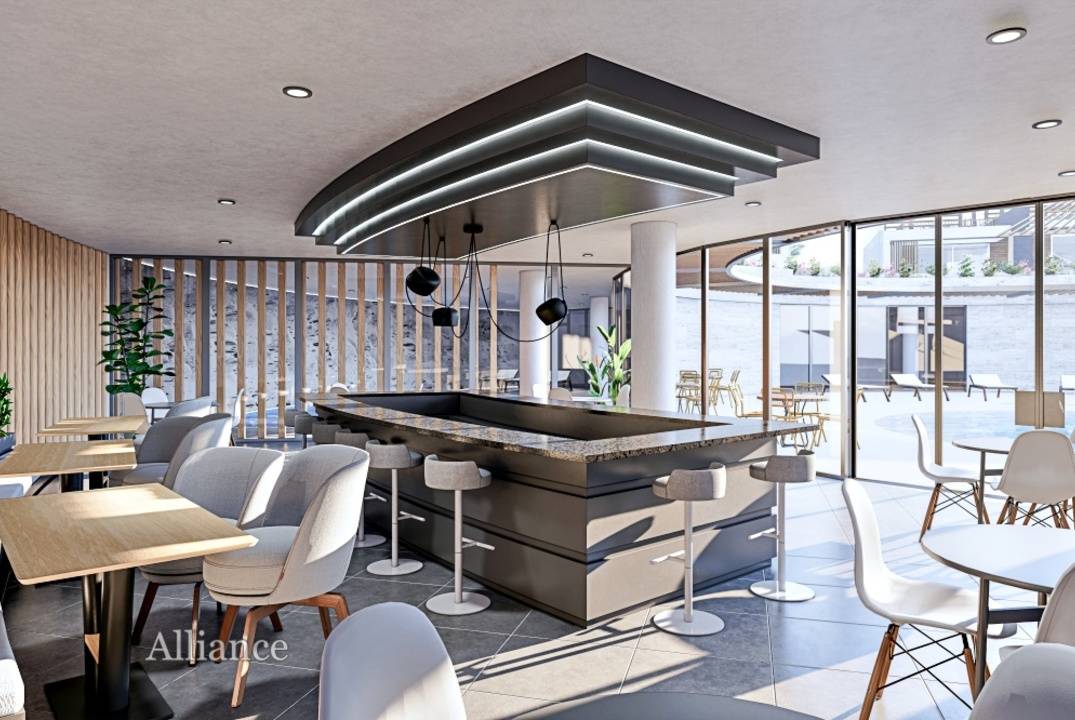The exquisite apartments are rented out with full finishes and excellent interior design and open living areas, designed by a company that has won numerous awards in the real estate industry. Each apartment amazes with attention to every detail. The entire resort complex has been designed in perfect harmony with the Mediterranean architecture and geographical location All residences are of impeccable quality: large entrance doors with appropriate fittings and locking systems, and marble floors of the highest quality.