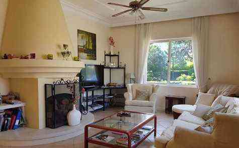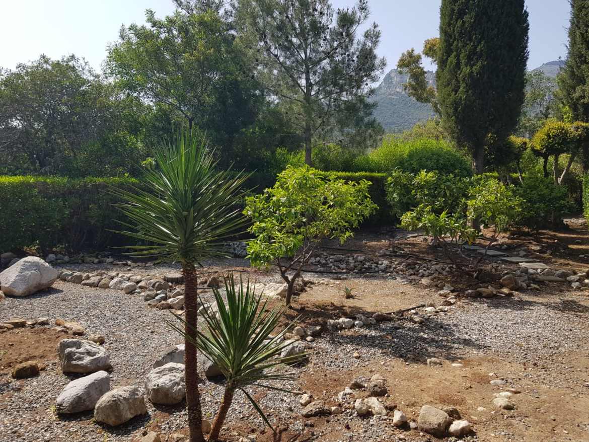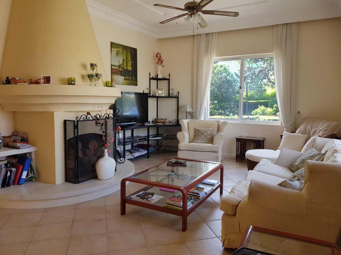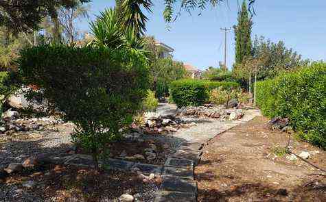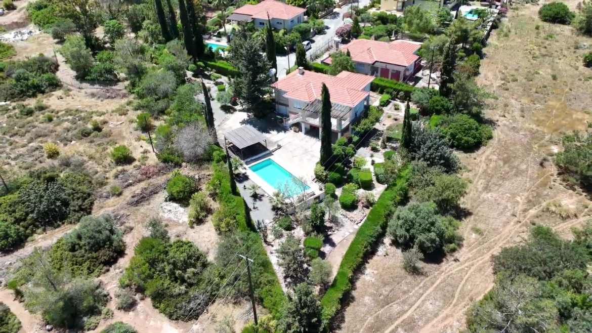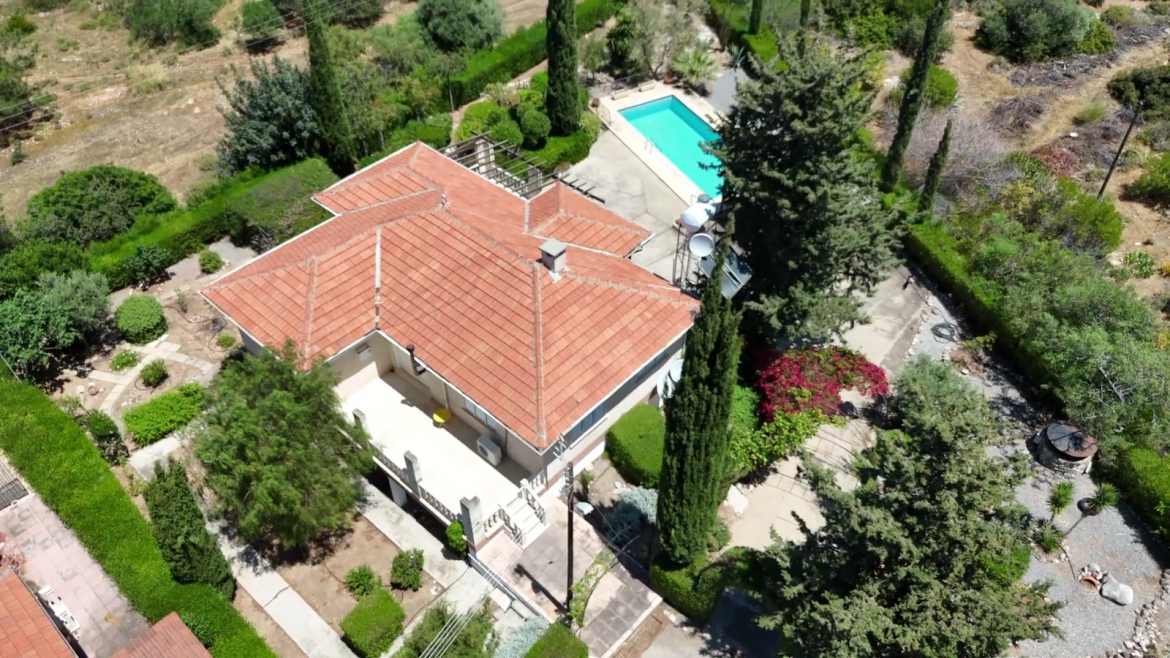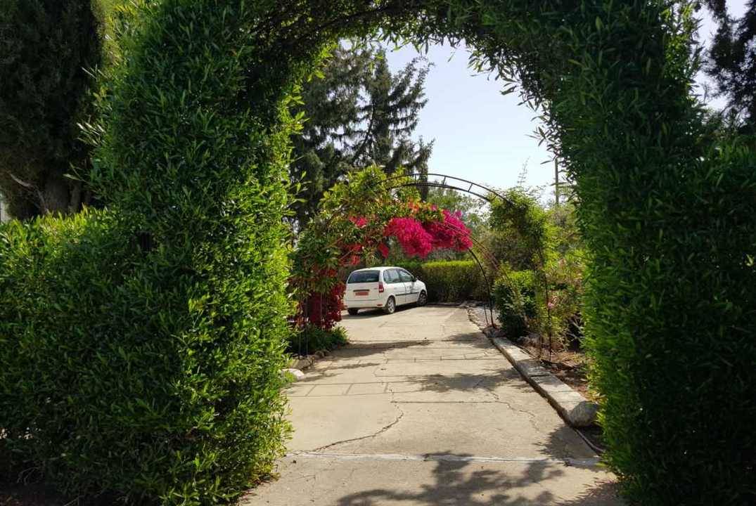 Surrounded by beautifully landscaped gardens on a plot of one donum (1,336 sq.m.), the property includes a functioning irrigation system and a water well to maintain the lush greenery. A private driveway ensures easy and secure access.