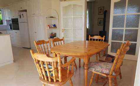 The large living room includes a cozy fireplace, while the adjacent kitchen and dining area provide a perfect blend of style and practicality. From the dining room, you can step out onto a spacious terrace with incredible views. Below, you'll find a private 8m x 4m skimmer pool and a charming gazebo, perfect for outdoor entertainment.