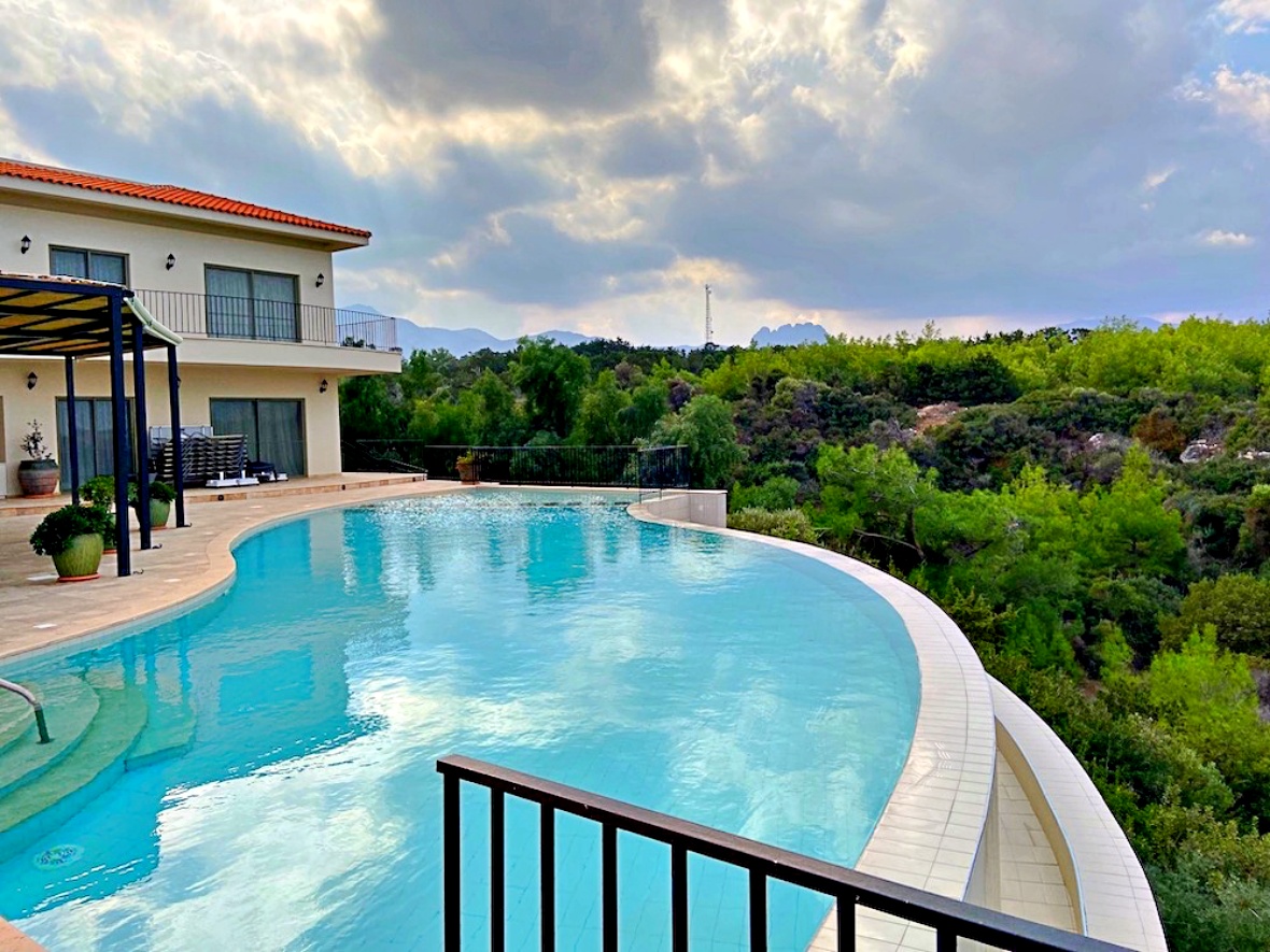 This property is located on the first line of the sea on a plot of 1741 square meters, has a closed area of 500 sq.m. and 300 meters of the terraces and balconies. The villa has seven bedrooms, all with en-suites, completely furnished and equipped to the highest standards. Spacious living room, dining room, and kitchen has an exit to the terrace with an additional outdoors bar and barbecue. Except the pool, there is sauna and Jacuzzi in the master bedroom. There is a rear opportunity to purchase the villa of this size and design in North Cyprus!